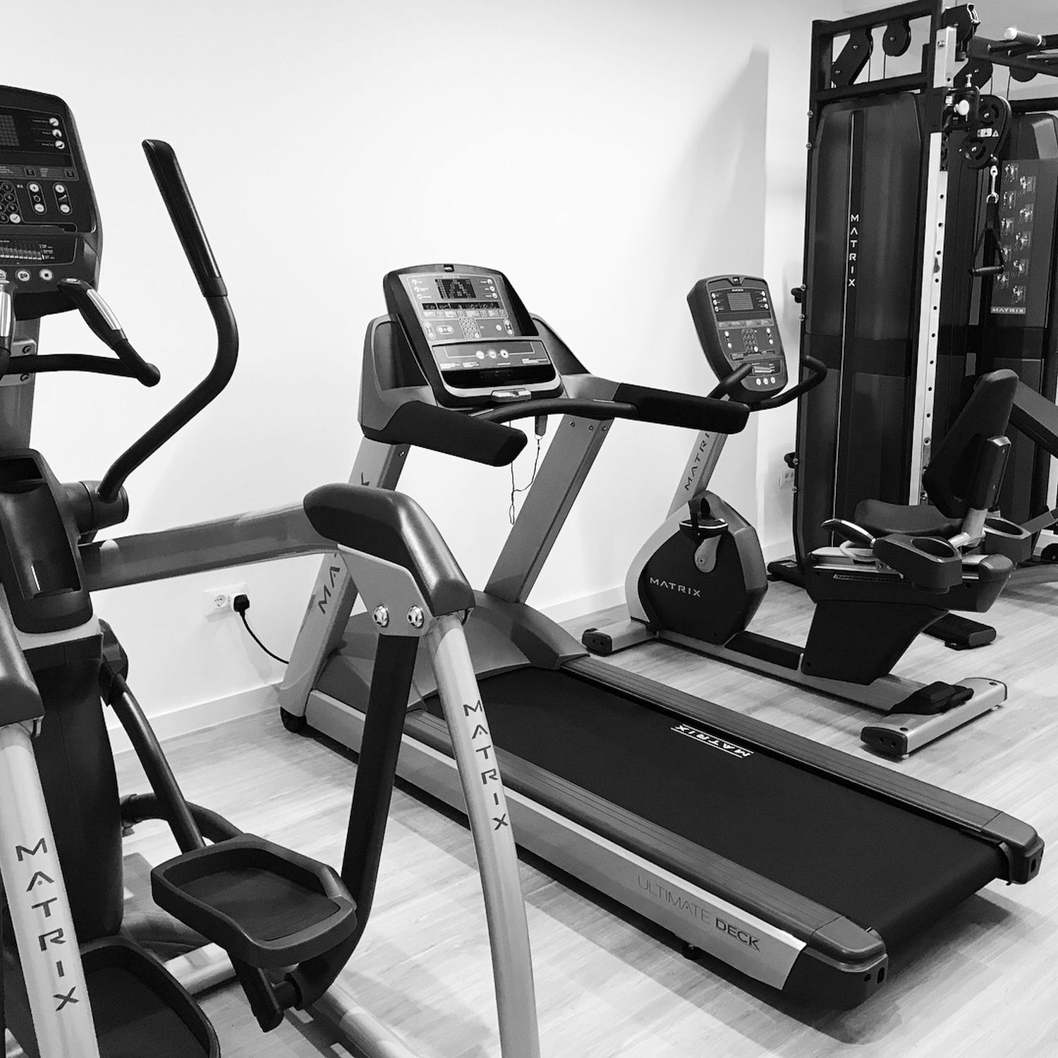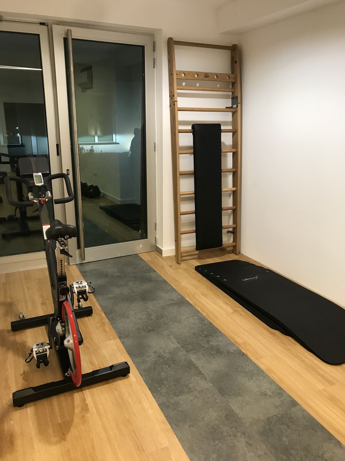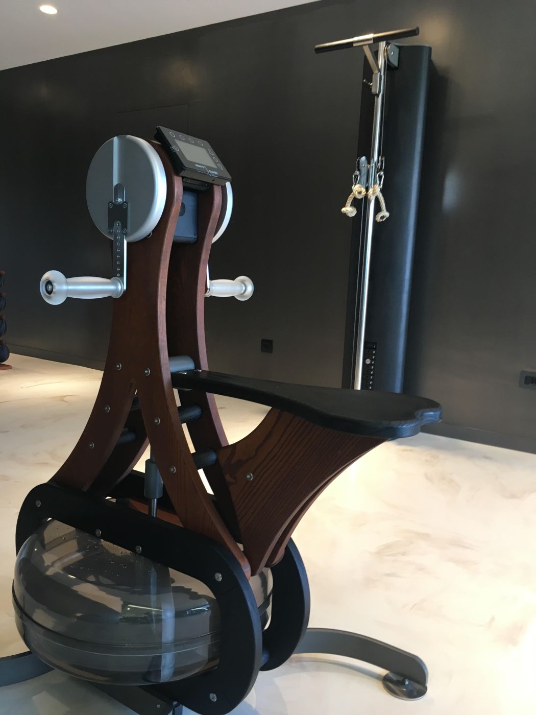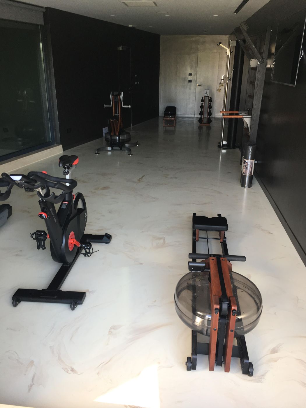 Naša vizija bila je ostanak u vezi s prirodom… zato smo se odlučili za NOHrD, fitness equipment od drvenih materijala, ovog puta u SPORT CLUB boji drveta (crno i smeđe drvo), s već prepoznatim i poznatim Waterrowerom, veslačkim ergometrom na vodu, te jedinstvenim SLIM BEAM, dizajnerski oblikovanim dual cable funkcionalnim trenažerom… Uz nezaobilaznu Matrixovu traku za trčanje kao jedini “hi-tech” proizvod, fitness je nakon instalacije i prezentacije od investitora dobio ocjenu 5+!