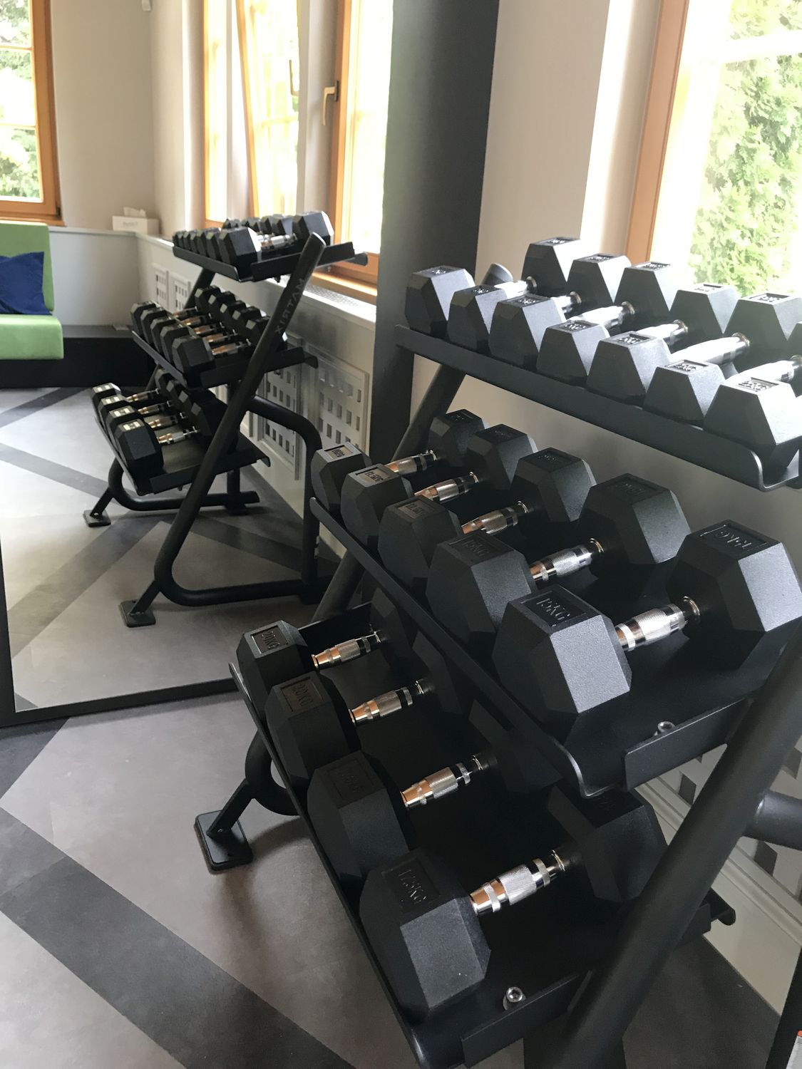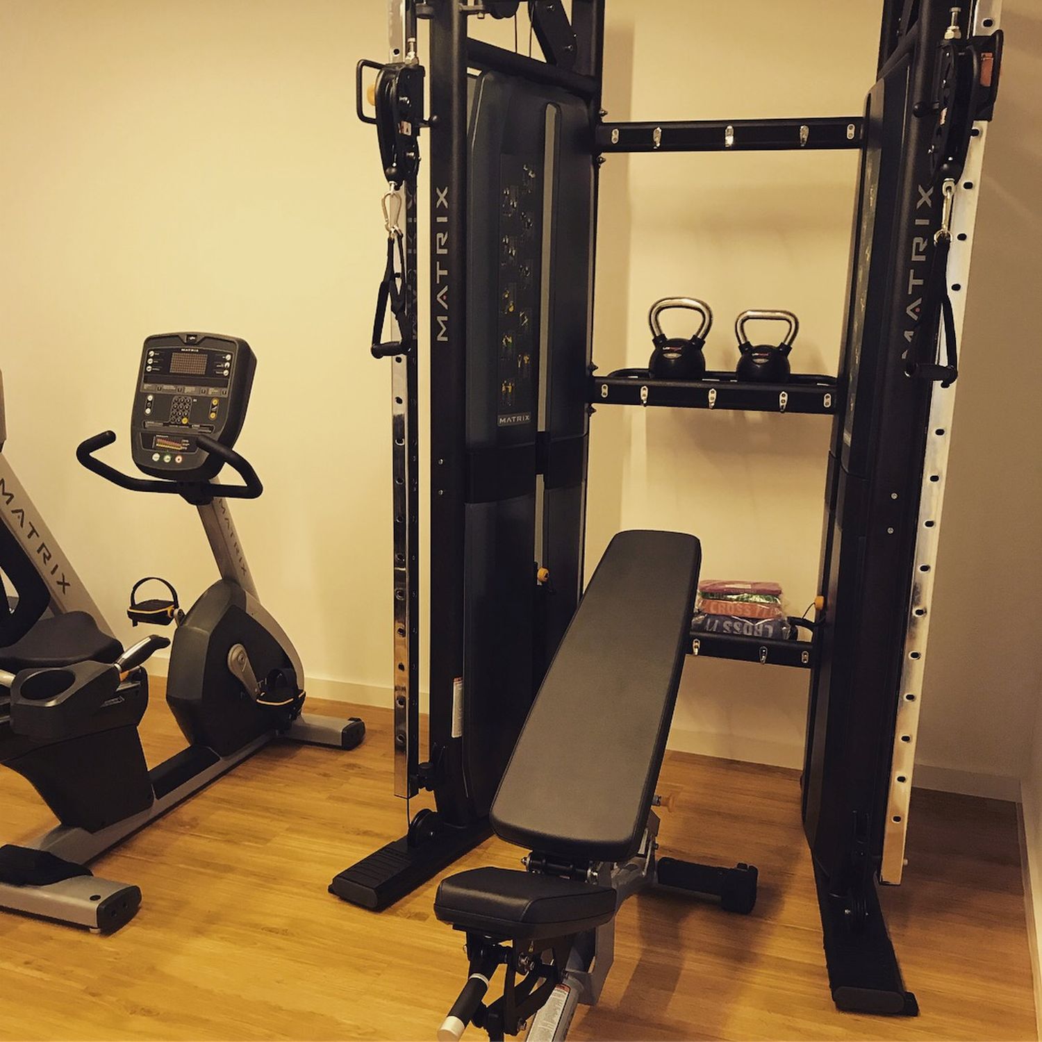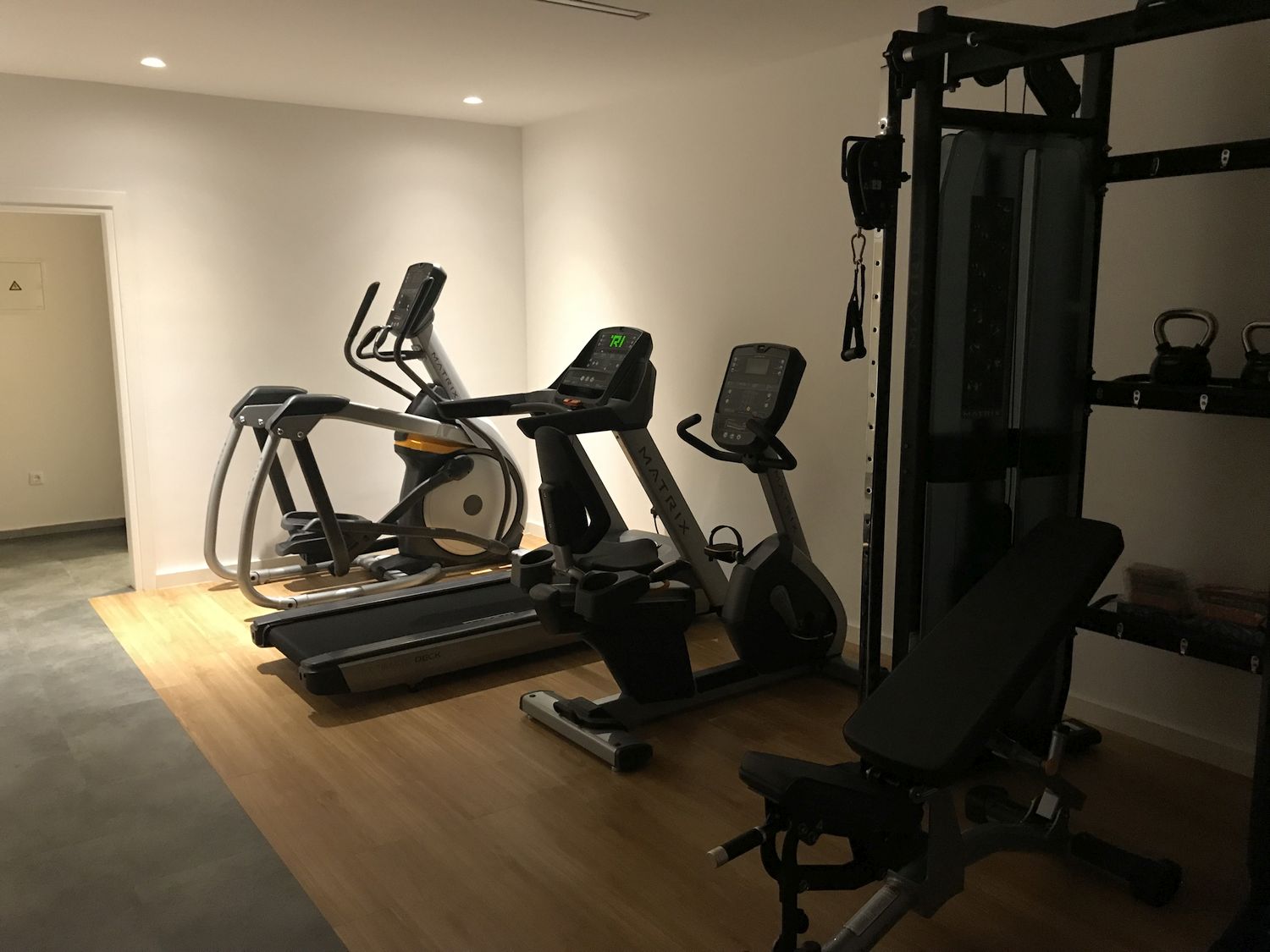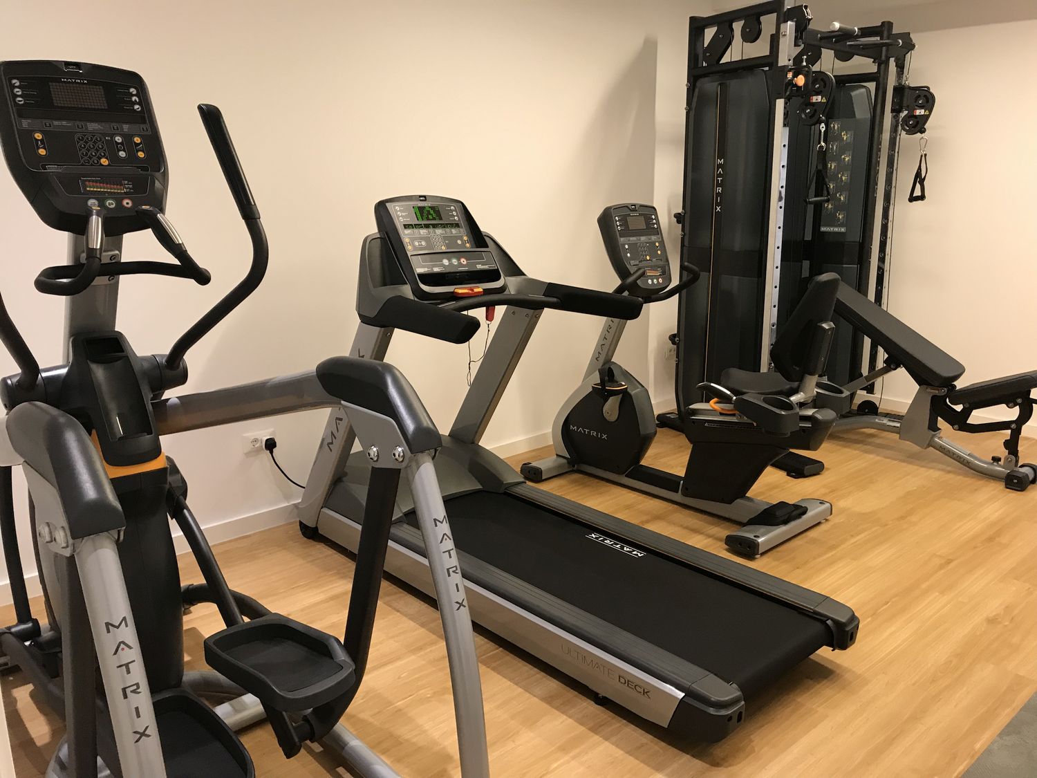 Naša vizija bila je ostanak u vezi s prirodom… zato smo se odlučili za NOHrD, fitness equipment od drvenih materijala, ovog puta u SPORT CLUB boji drveta (crno i smeđe drvo), s već prepoznatim i poznatim Waterrowerom, veslačkim ergometrom na vodu, te jedinstvenim SLIM BEAM, dizajnerski oblikovanim dual cable funkcionalnim trenažerom… Uz nezaobilaznu Matrixovu traku za trčanje kao jedini “hi-tech” proizvod, fitness je nakon instalacije i prezentacije od investitora dobio ocjenu 5+!