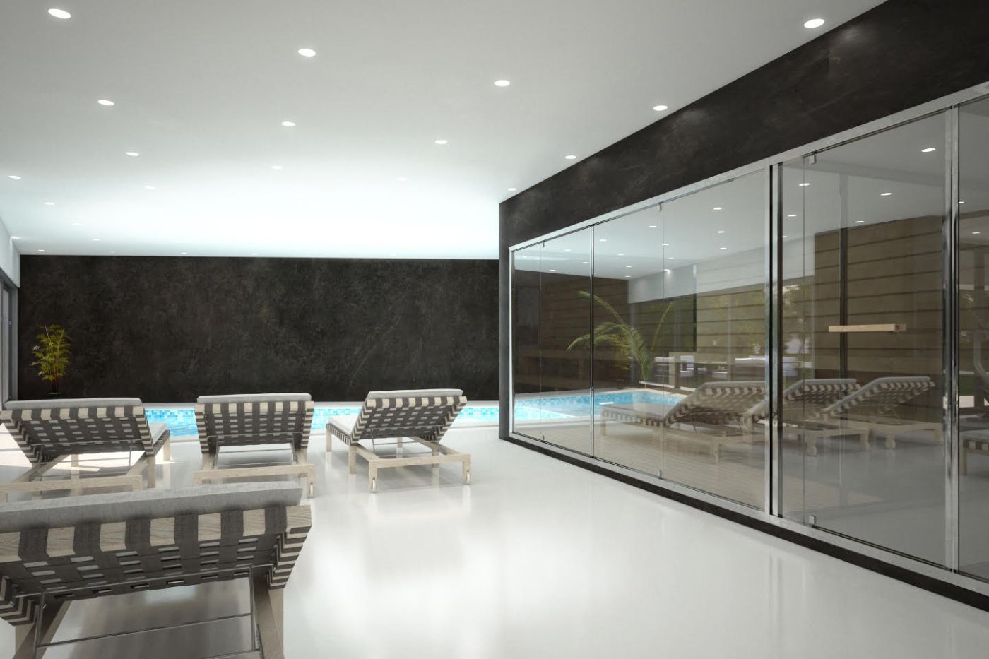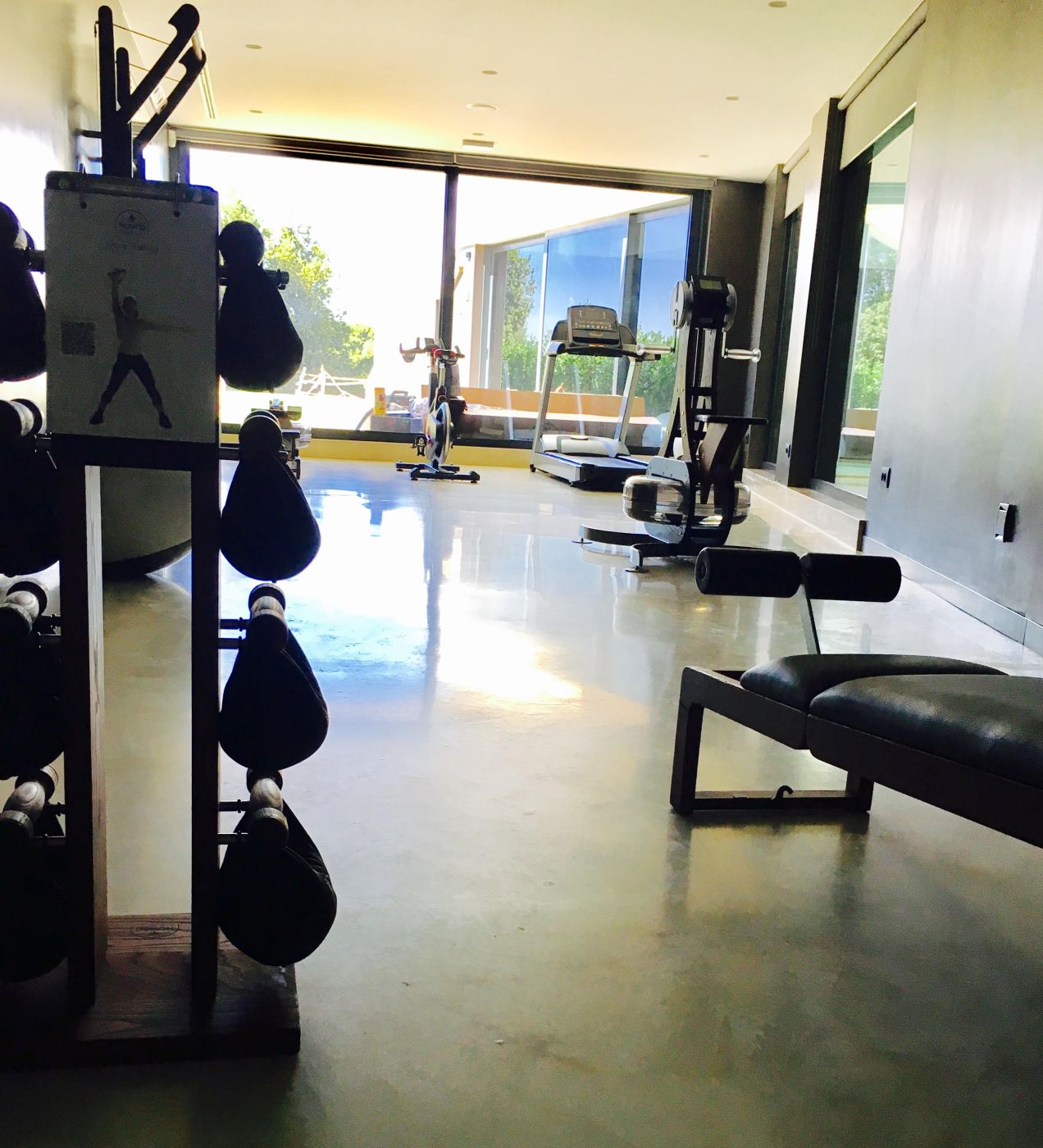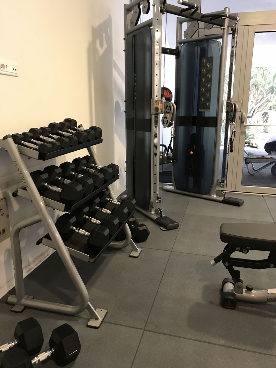 Villa MM obiluje dnevnim svjetlom koje u kombinaciji s posebnom rasvjetom stvara jedinstven i ekskluzivan ambijent u kojem se svatko osjeća ugodno i opušteno. U podrumu ove urbanističke vile, uz vinoteku, wellness, saunu i predivan unutranji bazen opremljen protustrujnim plivanjem i masažnim mlaznicama smjestio se i prostor u kojem je trebalo osmisliti fitness. Fitness koji nije smio zaostajati za čistim i modernim linijama kuće, kao niti za dizajnerski interijerom…